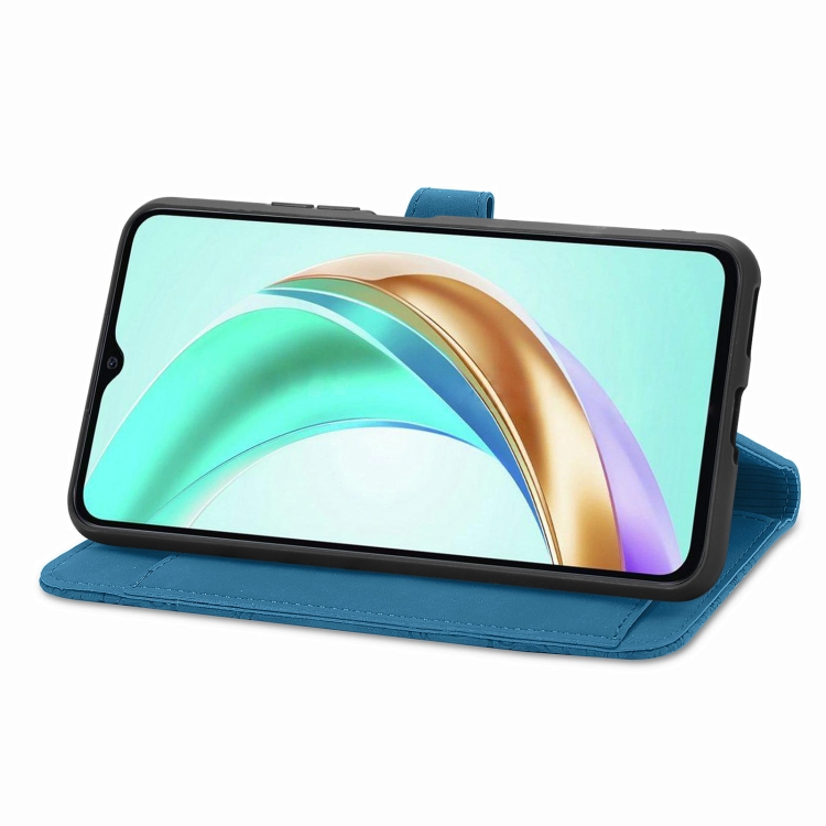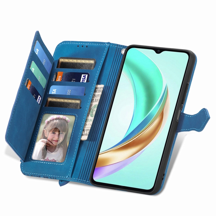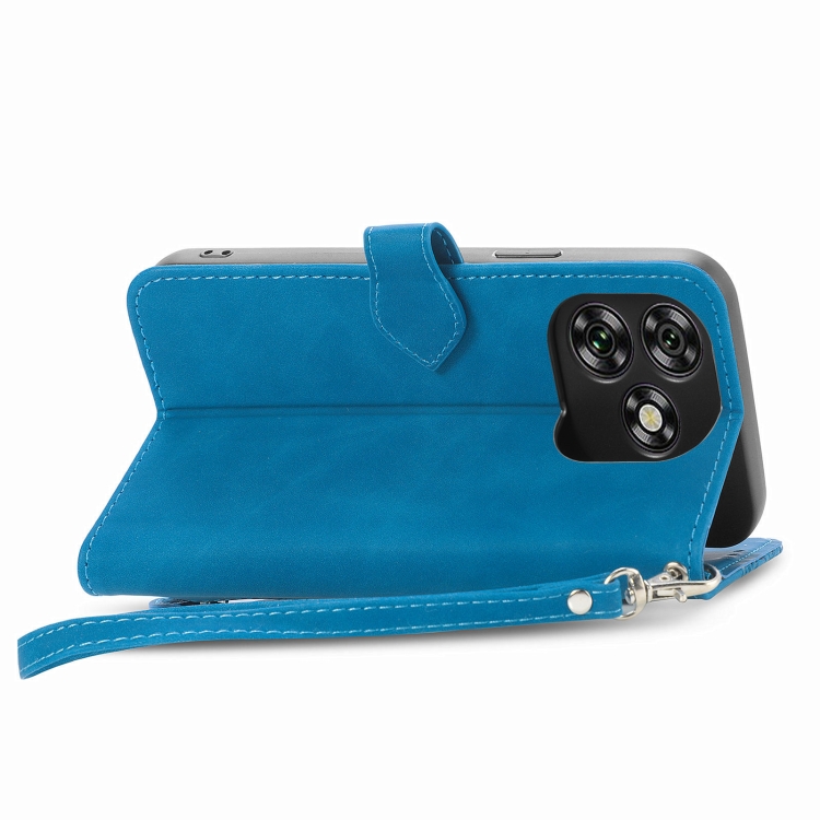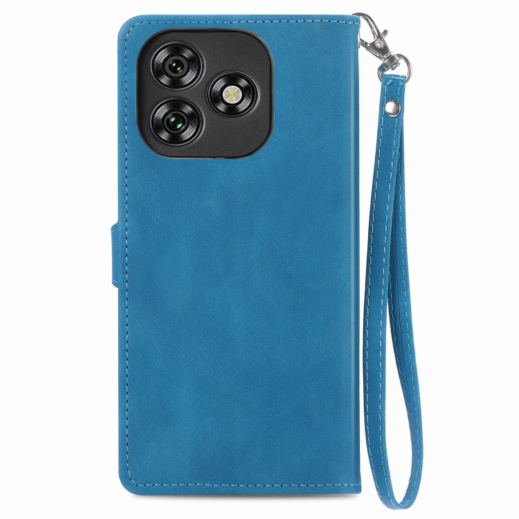 Funda de Cuero con Cremallera y Flores en Relieve para Oukitel C53 (Azul)