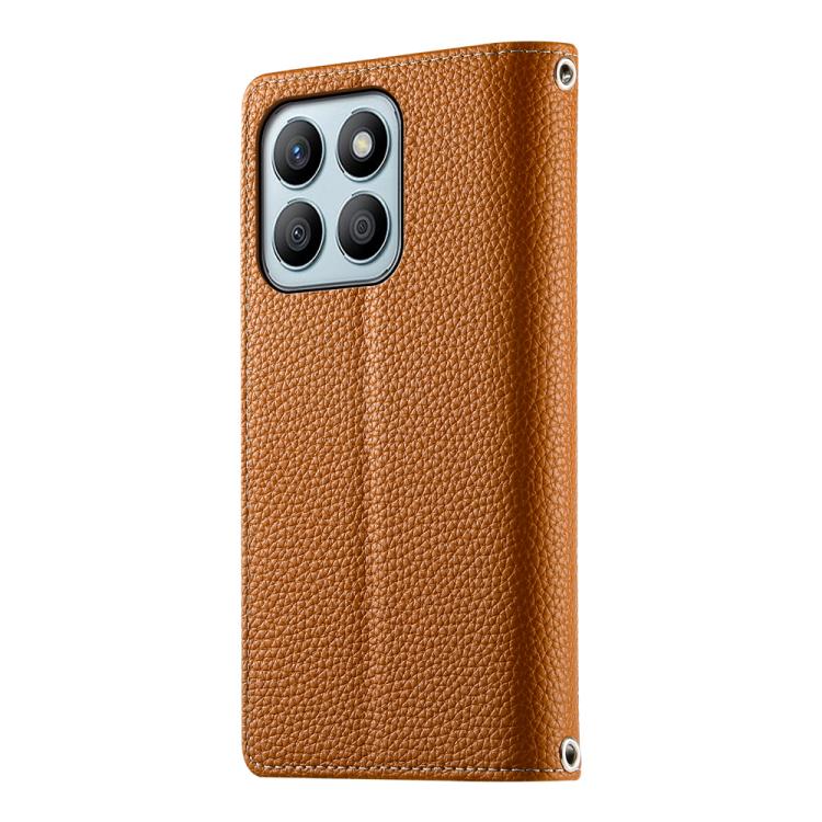 Funda de cuero con cremallera y múltiples tarjetas para Honor X8b, con costuras y correa corta (marrón)