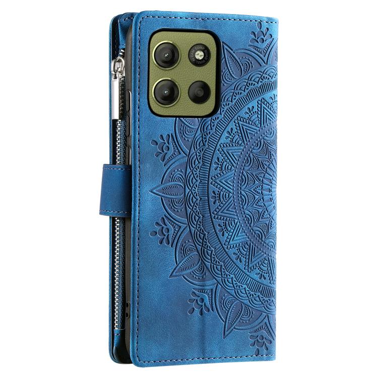 Funda de Cuero con Cremallera y Tarjetero para Motorola Moto G15 (Azul)