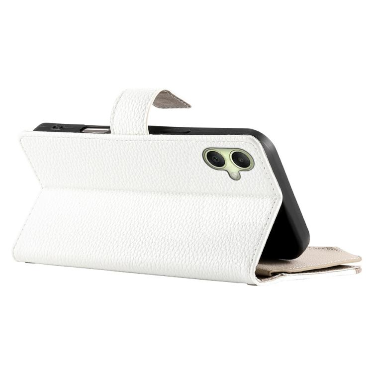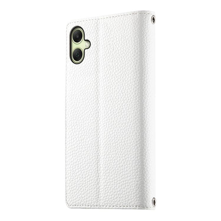 Funda de cuero con cremallera y múltiples tarjetas para Samsung Galaxy A06 4G / 5G / A07 4G con costuras y correa corta (blanca)