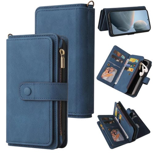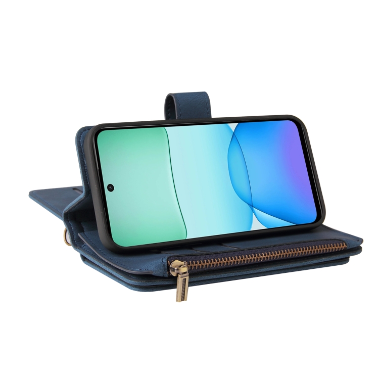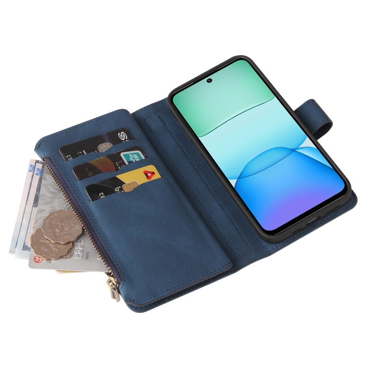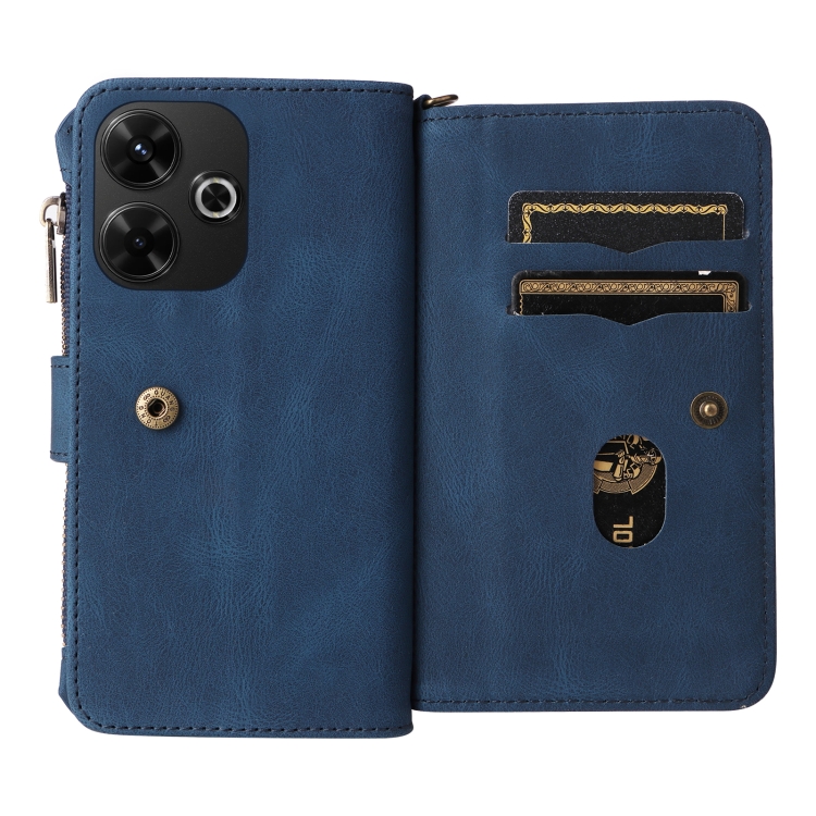 Funda de Cuero con Cremallera y Ranuras para Múltiples Tarjetas para Redmi 13 4G Global Skin Feel (Azul)