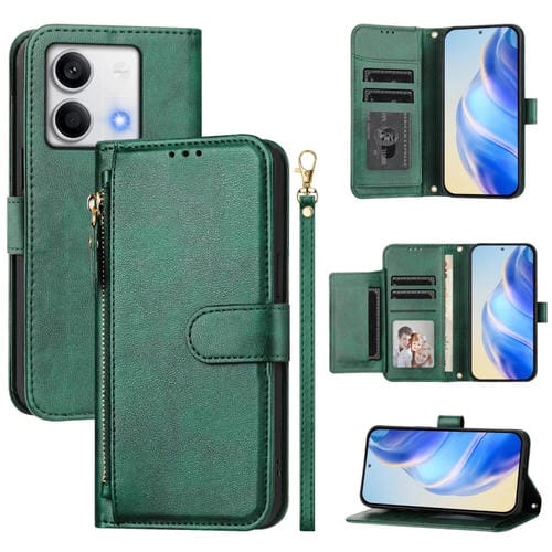 Funda de Cuero con Cremallera y Ranuras para Múltiples Tarjetas para Redmi Note 13 5G (Verde)