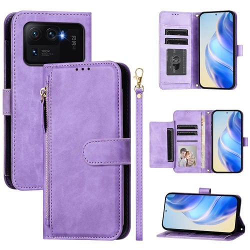 Funda de Cuero con Cremallera y Ranuras para Múltiples Tarjetas para Xiaomi Mi 11 Ultra (Morado)