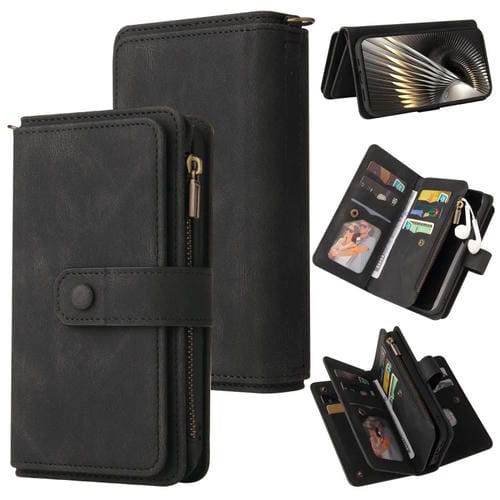 Funda de Cuero con Cremallera y Ranuras para Múltiples Tarjetas para Xiaomi Poco F6 (Negro)