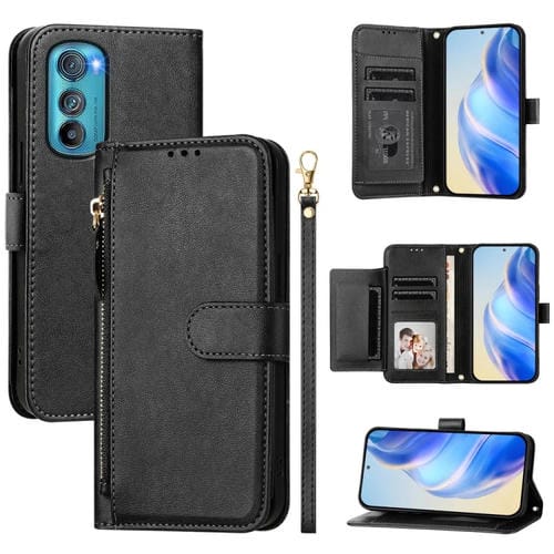 Funda de Cuero con Cremallera y Ranuras para Tarjetas para Motorola Edge 30 (Negro)