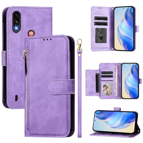 Funda de Cuero con Cremallera y Ranuras para Tarjetas para Motorola Moto E7 Power (2021) (Morado)