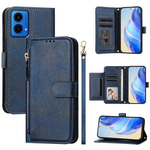 Funda de Cuero con Cremallera y Ranuras para Tarjetas para Motorola Moto G45 5G/G34 5G (Azul)