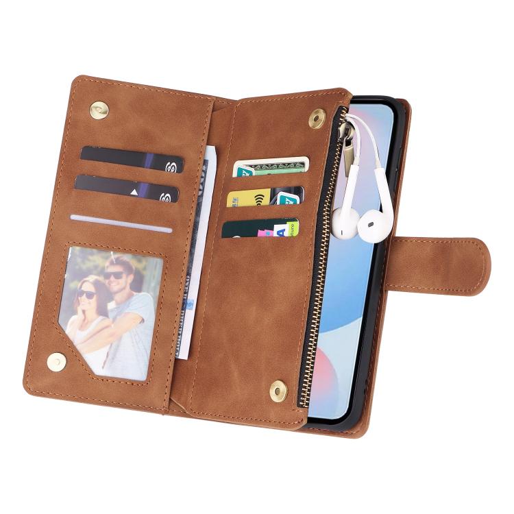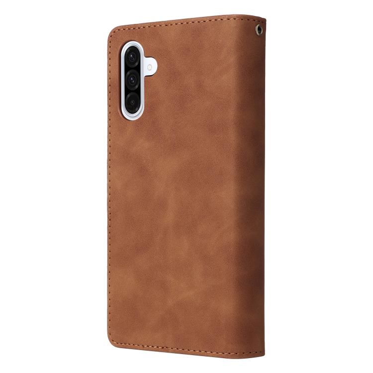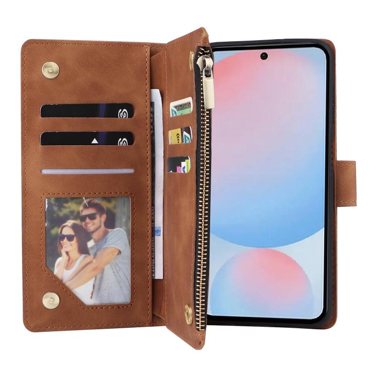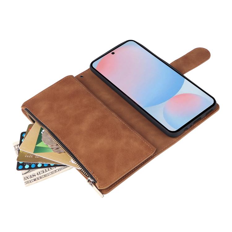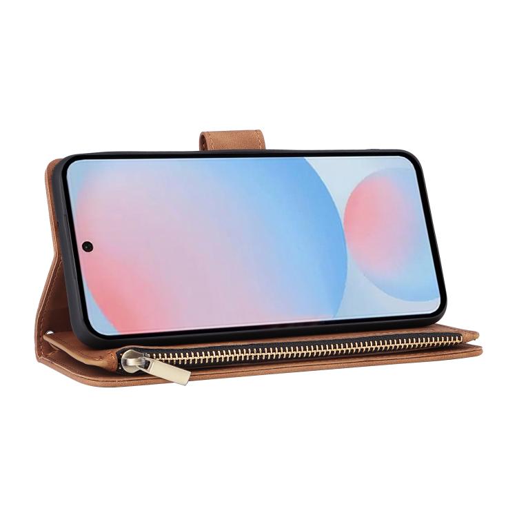 Funda de Cuero Samsung Galaxy A56 5G con Cremallera y Tarjetero Multifuncional (Marrón)