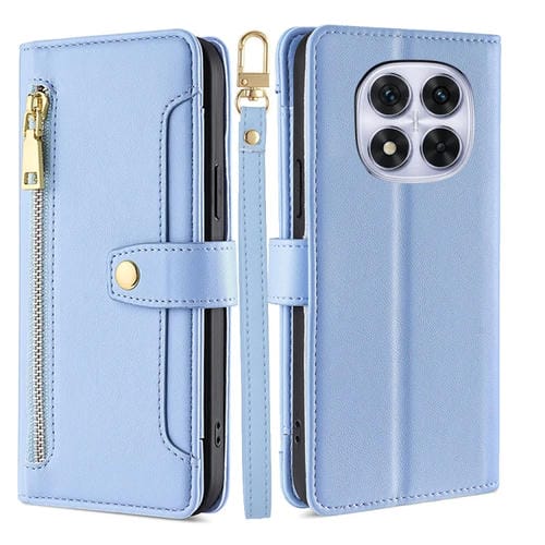 Funda de Cuero con Textura de Oveja para Redmi Note 14 Pro 5G, con Cierre Cruzado y Billetera (Azul)
