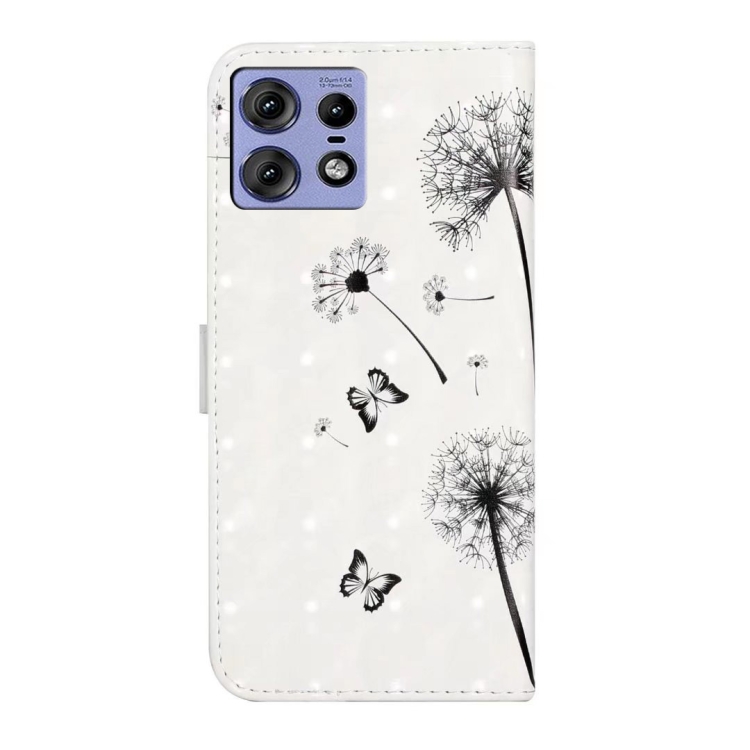 Funda de Cuero con Dibujo 3D en Relieve Aceite para Motorola Edge 50 Pro (Dientes de León)
