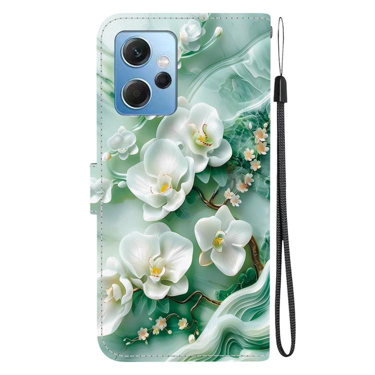 Funda de Cuero con Dibujo de Colores y Textura de Cristal Global para Redmi Note 12 4G (Flores de Jade)