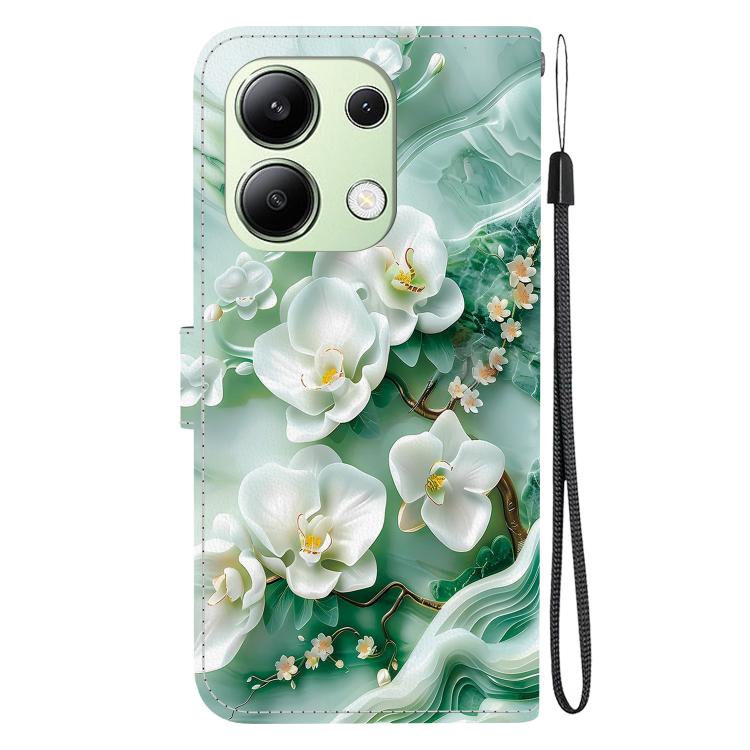 Funda de Cuero con Dibujo de Colores y Textura de Cristal Global para Redmi Note 13 4G (Flores de Jade)