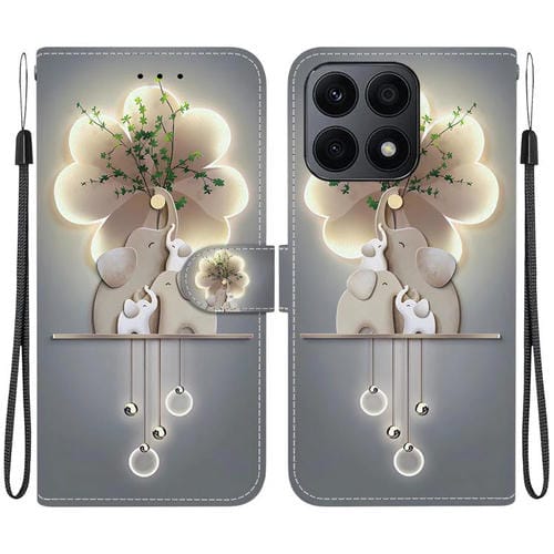 Funda de Cuero Honor X8A con Dibujo de Colores y Textura de Cristal (Elefantes)