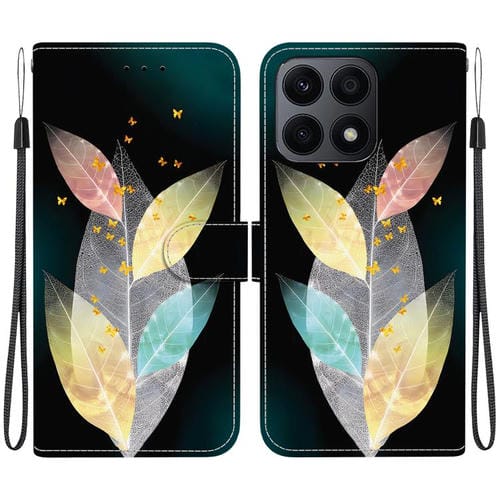 Funda de Cuero Honor X8A con Dibujo de Colores y Textura de Cristal (Hojas de Colores)