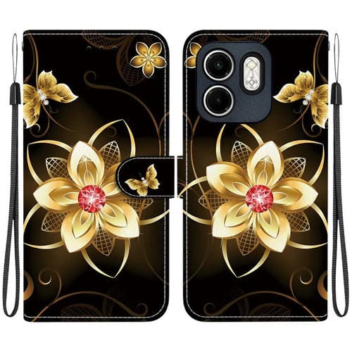 Funda de Cuero para Infinix Hot 50I Smart 9 con Dibujo de Colores y Textura de Cristal (Flor Dorada)