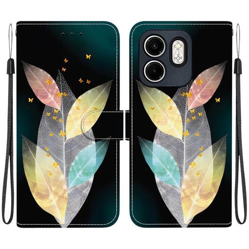 Funda de Cuero para Infinix Hot 50I Smart 9 con Dibujo de Colores y Textura de Cristal (Hojas de Colores)
