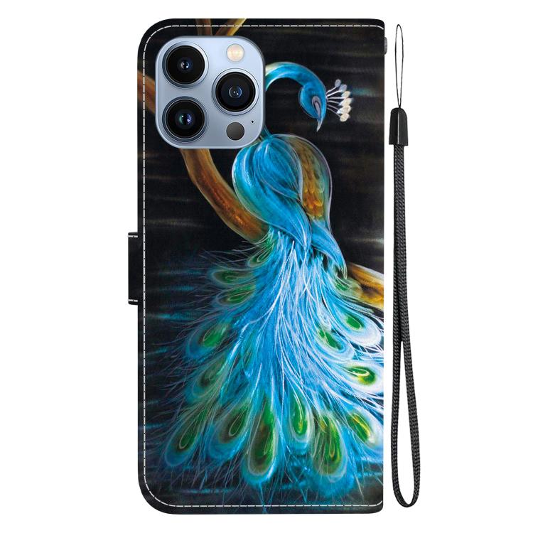 Funda de Cuero para iPhone 12/12 Pro con Dibujo de Colores y Textura de Cristal (Pavo Real)
