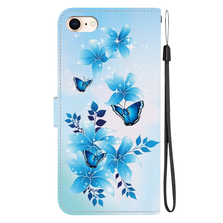 Funda de Cuero para iPhone 7/8/Se 2022 con Dibujo de Colores y Textura de Cristal (Mariposas Azules)