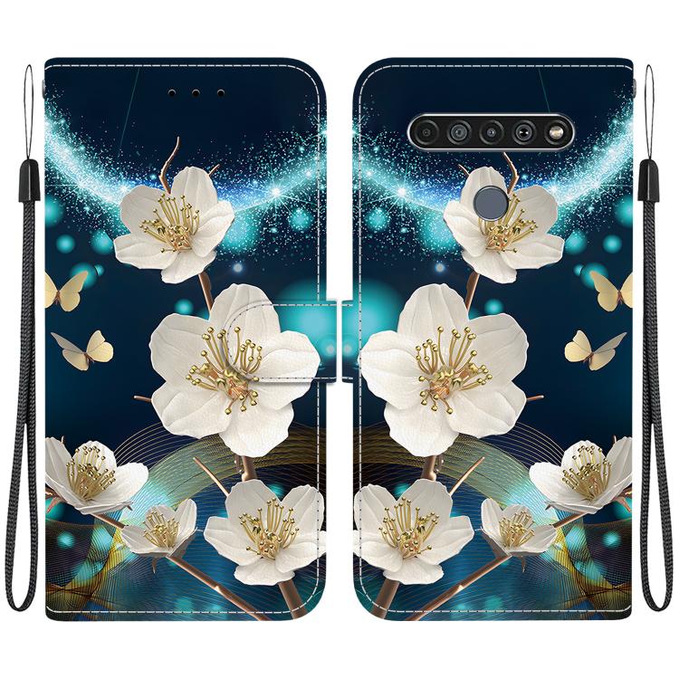 Funda de Cuero para LG K61 con Dibujo de Colores y Textura de Cristal (Magnolia)