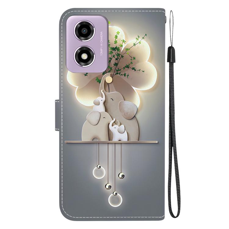 Funda de Cuero con Dibujo y Textura de Cristal para Motorola Moto G04S/E14 (Elefantes)