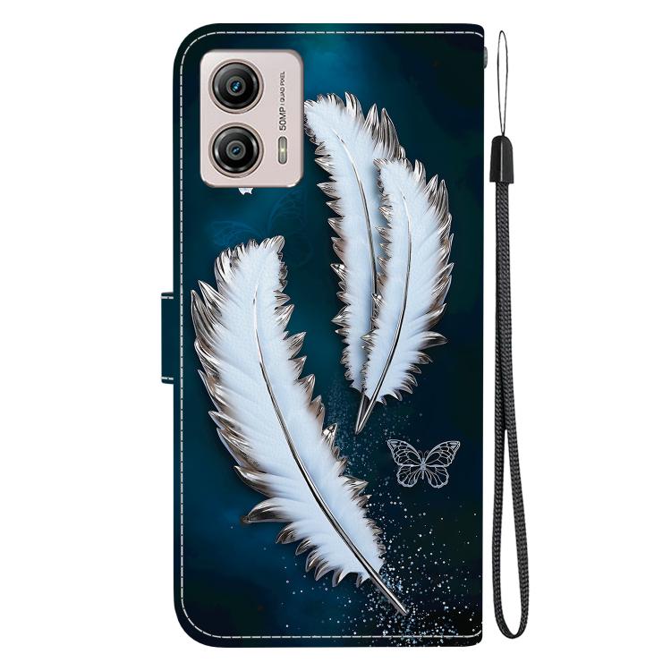 Funda de Cuero con Dibujo y Textura de Cristal para Motorola Moto G13/G23/G53 (Plumas de Mariposa Blancas)