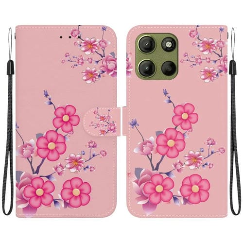 Funda de Cuero Motorola Moto G15 con Dibujo de Colores y Textura de Cristal (Flores de Cerezo)