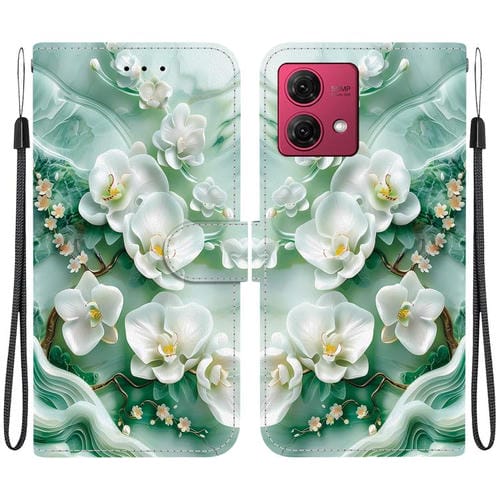 Funda de Cuero para Motorola Moto G84 con Dibujo de Colores y Textura de Cristal (Flores de Jade)