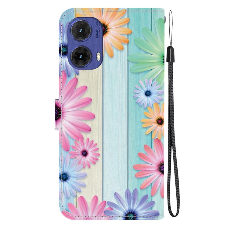 Funda de Cuero para Motorola Moto G85 con Dibujo de Colores y Textura de Cristal (Girasoles)