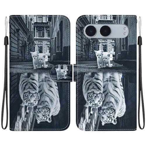 Funda de Cuero con Dibujo y Textura de Cristal para OnePlus Nord 4 (Reflejo de Tigre y Gato)