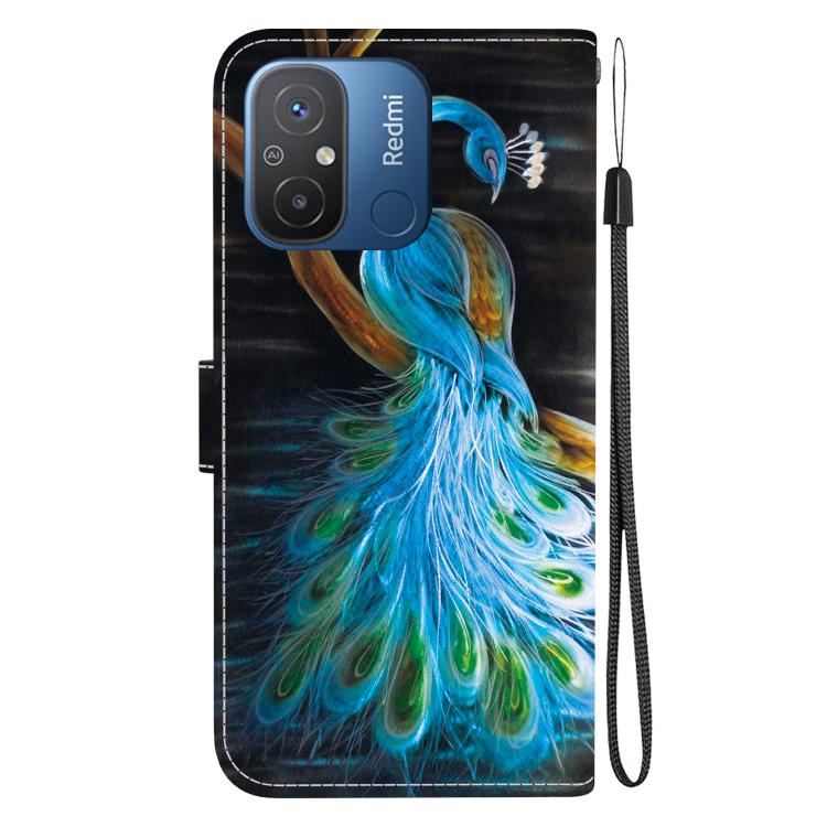 Funda de Cuero con Dibujo de Colores y Textura de Cristal para Redmi 12C/11A (Pavo Real)