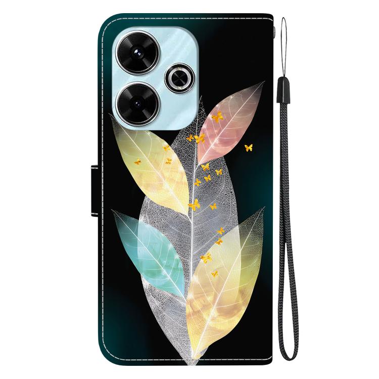 Funda de Cuero con Dibujo de Colores y Textura de Cristal para Redmi 13 4G/Poco M6 (Hojas de Colores)