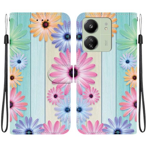 Funda de Cuero con Dibujo de Colores y Textura de Cristal para Redmi 13C 4G / 5G / 13R 5G (Girasoles)
