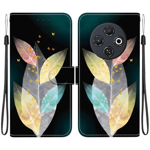 Funda de Cuero para Tecno Spark 30C con Dibujo de Colores y Textura de Cristal (Hojas de Colores)
