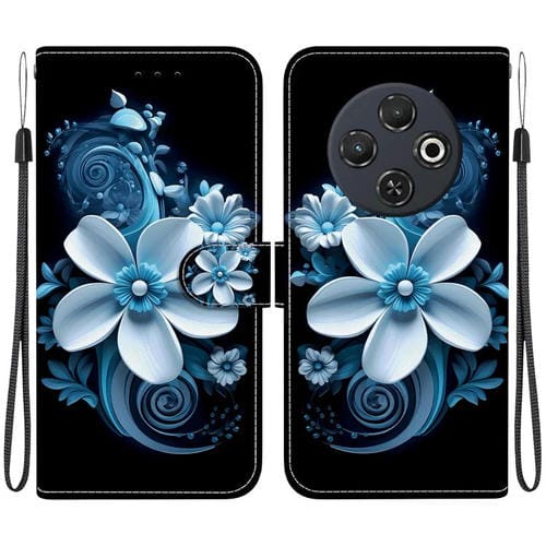 Funda de Cuero para Tecno Spark 30C con Dibujo de Colores y Textura de Cristal (Orquídea Negra)