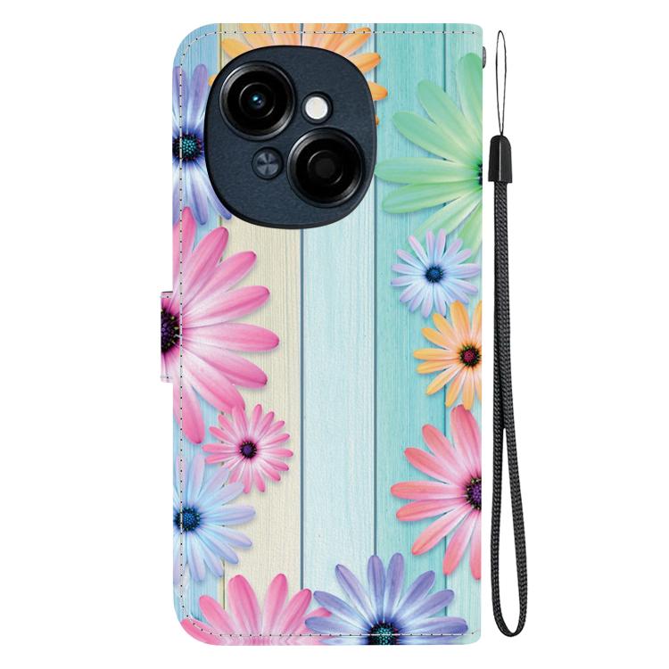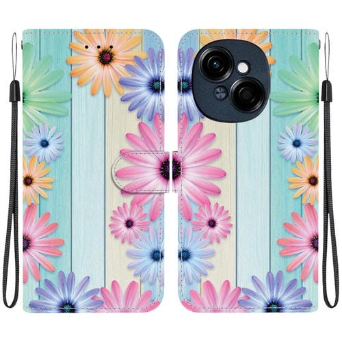Funda de Cuero con Dibujo de Colores y Textura de Cristal para Tecno Spark Go 1/Pop 9 Pro (Girasoles)