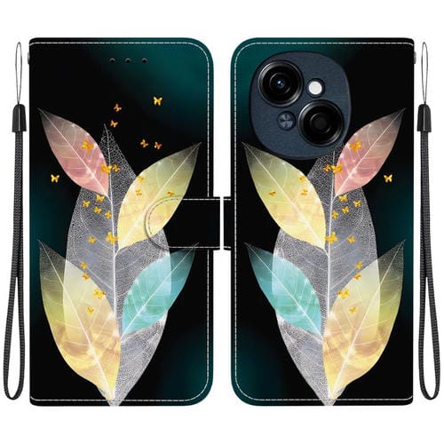 Funda de Cuero para Tecno Spark Go 1 y Pop 9 Pro con Dibujo de Colores y Textura de Cristal (Hojas de Colores)