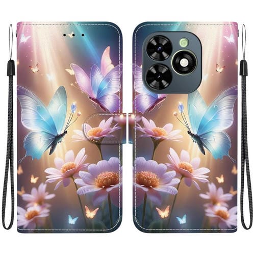 Funda de Cuero para Tecno Spark Go 2024/20C/Pop 8 con Dibujo Colorido y Textura Cristal (Mariposa y Flor)