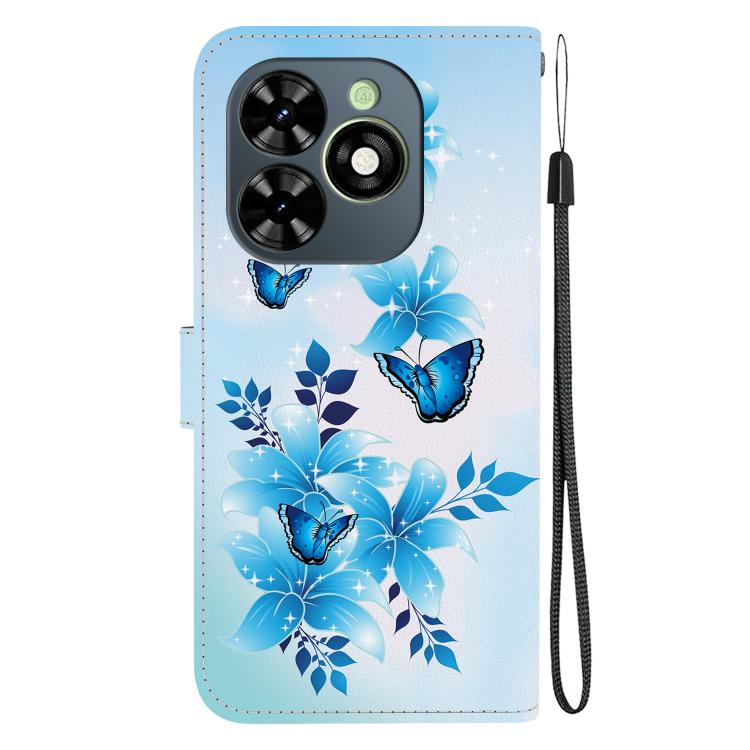 Funda de Cuero para Tecno Spark Go 2024/20C/Pop 8 con Dibujo de Colores y Textura de Cristal (Mariposas Azules)