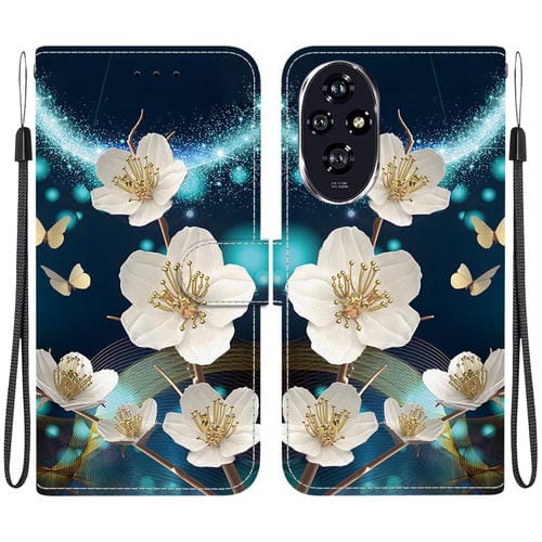 Funda de Cuero con Dibujo y Textura de Cristal para Honor 200 5G (Magnolia)