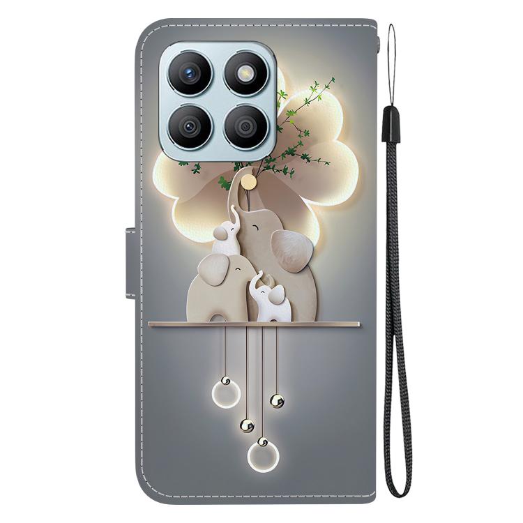 Funda de Cuero para Honor X8B con Dibujo de Elefantes y Textura de Cristal