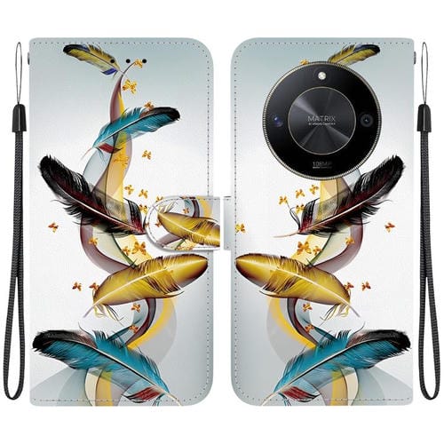 Funda de Cuero para Honor X9B y Magic6 Lite con Dibujo de Colores y Textura de Cristal (Plumas de Mariposa Doradas)