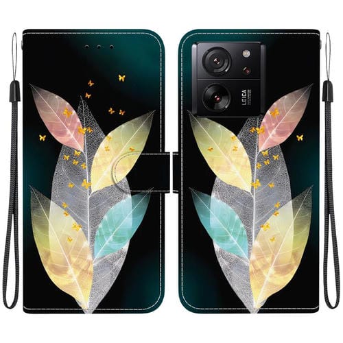 Funda de Cuero con Dibujo de Colores y Textura de Cristal para Xiaomi 13T/13T Pro (Hojas de Colores)