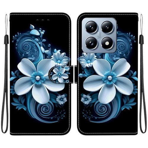 Funda de Cuero con Dibujo de Colores y Textura de Cristal para Xiaomi 14T Pro (Orquídea Negra)