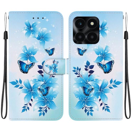 Funda de Cuero para Honor X6A con Dibujo y Textura de Cristal (Mariposas Azules)