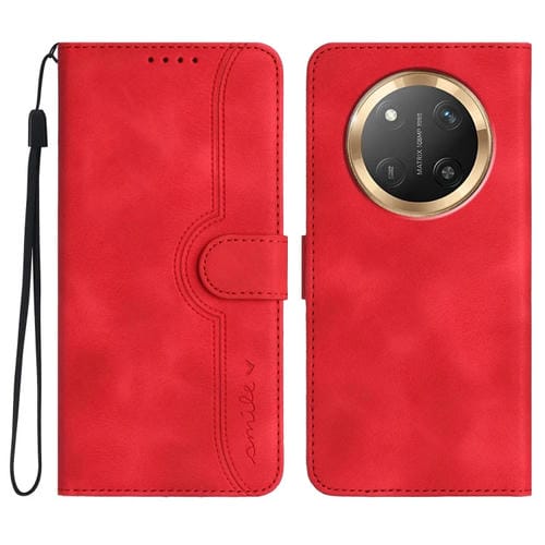 Funda de Cuero para Honor X9C con Diseño de Corazón y Tacto para Rostro (Rojo)