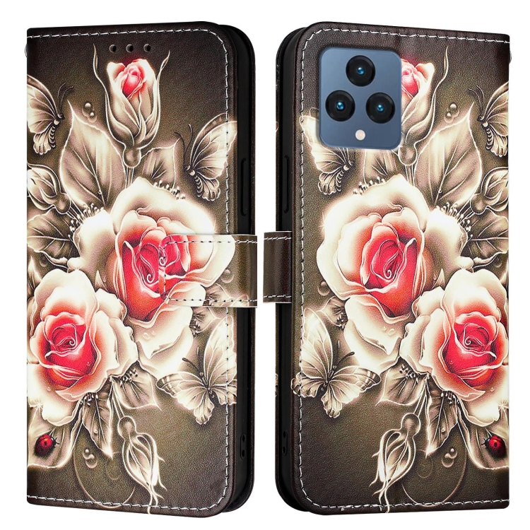 Funda de Cuero para Teléfono T-Mobile Revvl 6/6X 5G con Diseño de Dibujos (Rosas Sobre Negro)