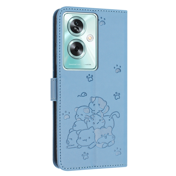 Funda de Cuero con Estampado de Gatito y Cordón para Oppo A79 5G (Azul)