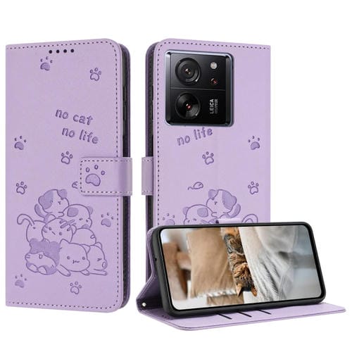 Funda de Piel con Diseño de Gatito En Relieve y Cordón para Redmi K60 Ultra (Morado)