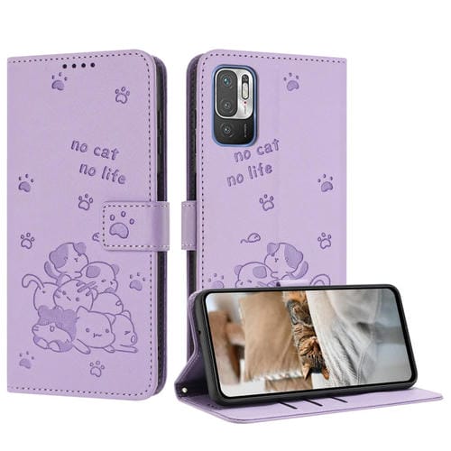 Funda de Piel con Diseño de Gatito En Relieve y Cordón para Redmi Note 10 5G/Note 10T 5G (Morado)