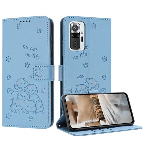 Funda de Piel con Diseño de Gatito En Relieve para Redmi Note 10 Pro con Cordón (Azul)